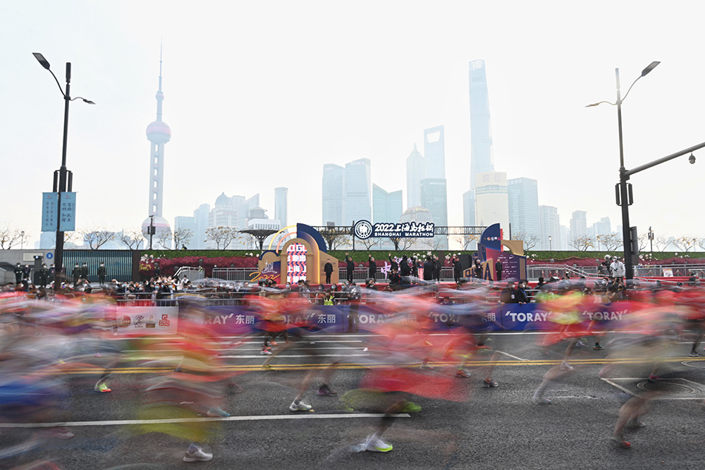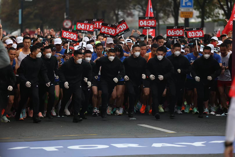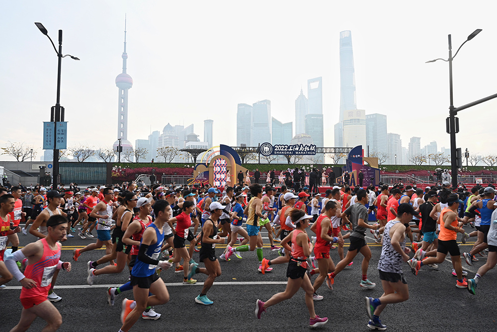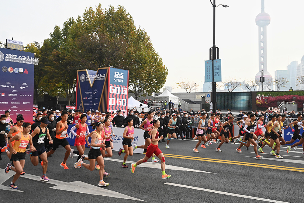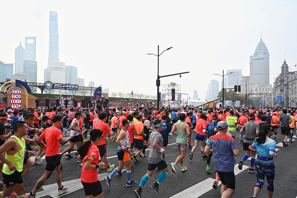 11月27日,2022上海马拉松赛于外滩金牛广场鸣枪起跑。