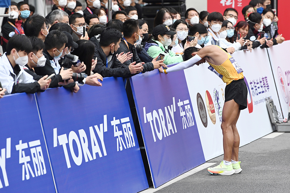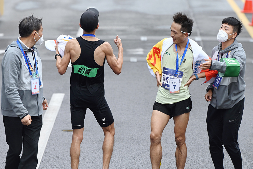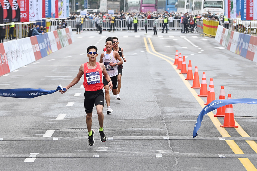 杨绍辉以2小时16分04秒夺得上马男子组冠军,管油胜、贾俄仁加分获二、三位。