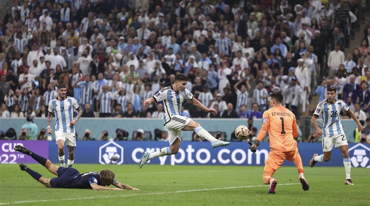 北京时间14日凌晨进行的2022世界杯半决赛上,阿根廷队的胡利安·阿尔瓦雷斯一鸣惊人。