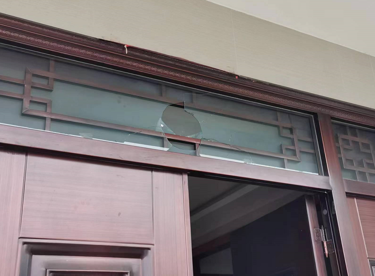 而寺前村的这块石头,正好砸在了村民陈群红家的大门上。“直接砸下来,把我家铁窗玻璃砸坏了。”