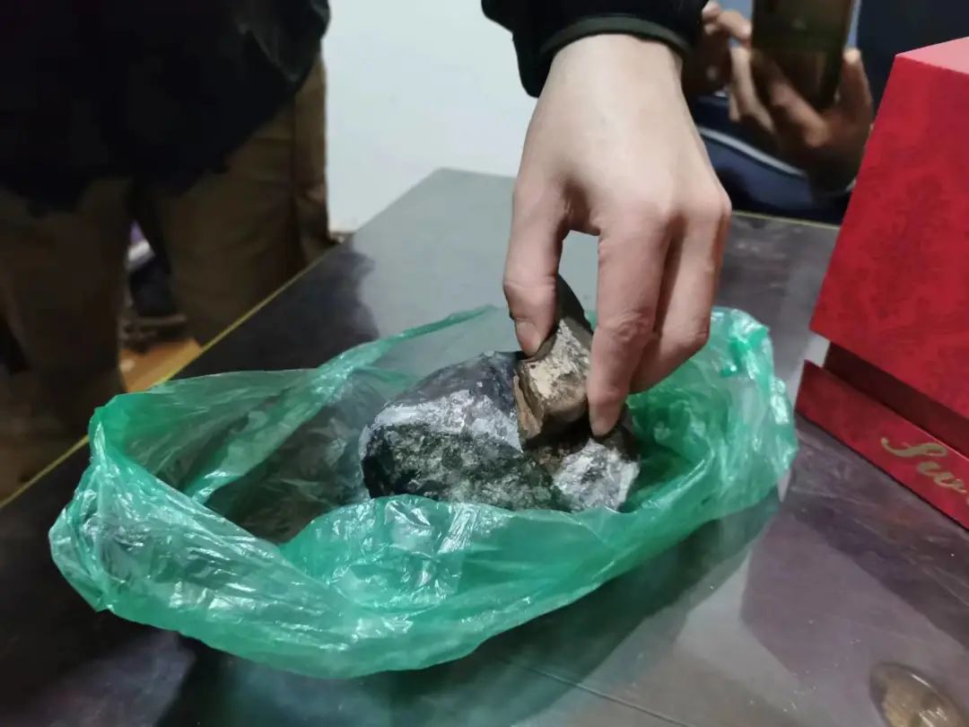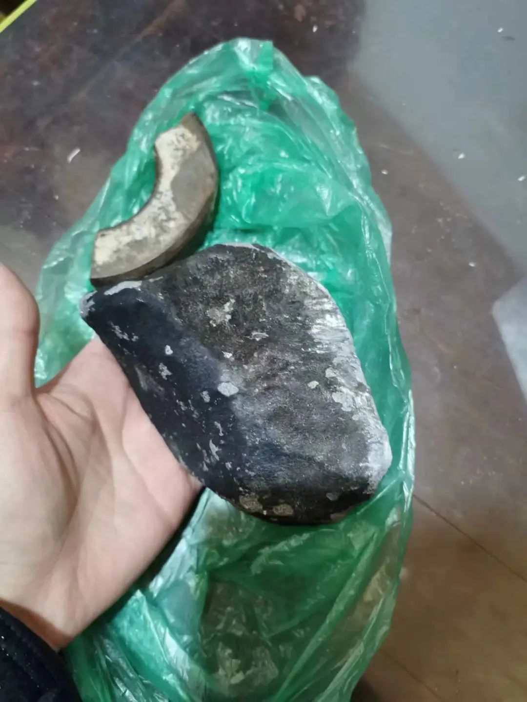 陈根花后来在别人家坐了会儿,看到微信群里有人说也捡到类似的石头,才想到刚才看到的石头,捡了回来,“也是黑漆漆的,看上去一模一样。”