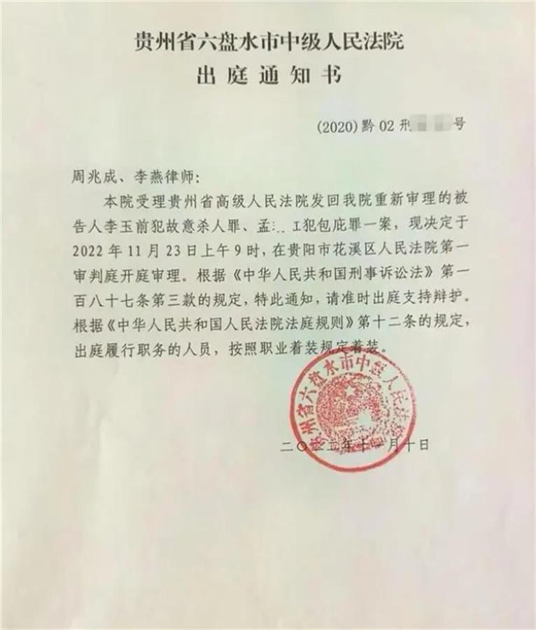 因被认为犯故意杀人罪,李玉前先是被判处死刑,但该判决被贵州高院发回重审。随后,他被改判死缓。孟某红则因犯包庇罪,获有期徒刑八年。贵州高院也认可了这一判决。
