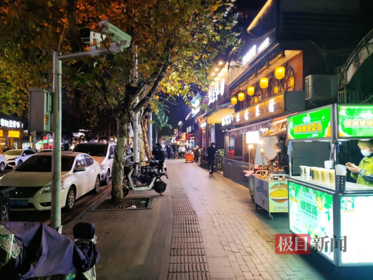 晚上8时许,汉口万松园路美食街,此时本该是这条武汉知名美食街的客流高峰期,但路边却有多个停车位空置。多数餐馆内客流稀少,只有少数几家餐馆内的客人稍多。由于客流量少,很多餐馆甚至没有在门口安排服务员揽客。