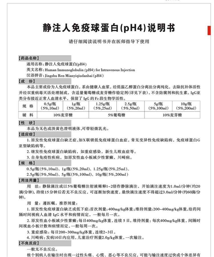 部分静注人免疫球蛋白(PH4)包装 来源网络