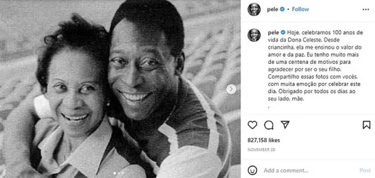 贝利的母亲塞莱斯特刚刚100岁,由女儿玛丽亚照顾,她还没有被告知世界著名的足球明星儿子已经去世的消息。