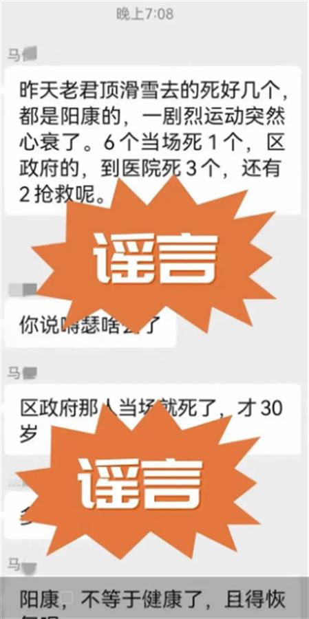 传言称,这次死亡的6人,都是“阳康”后在滑雪时心衰造成的。这位网民还非常贴心地“提醒”:阳康,不等于健康了,且得恢复呢。