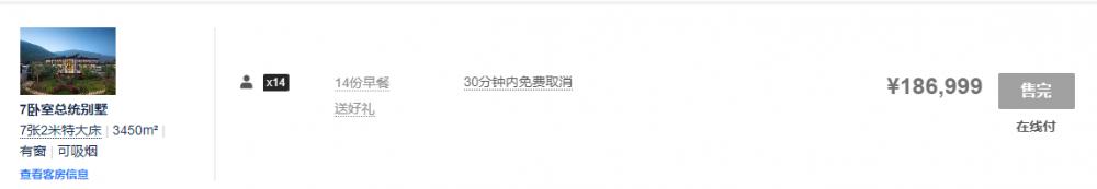 ▲最贵一套“7卧室总统别墅”预订,价格高达186999元/晚。图片来源/预订平台截图