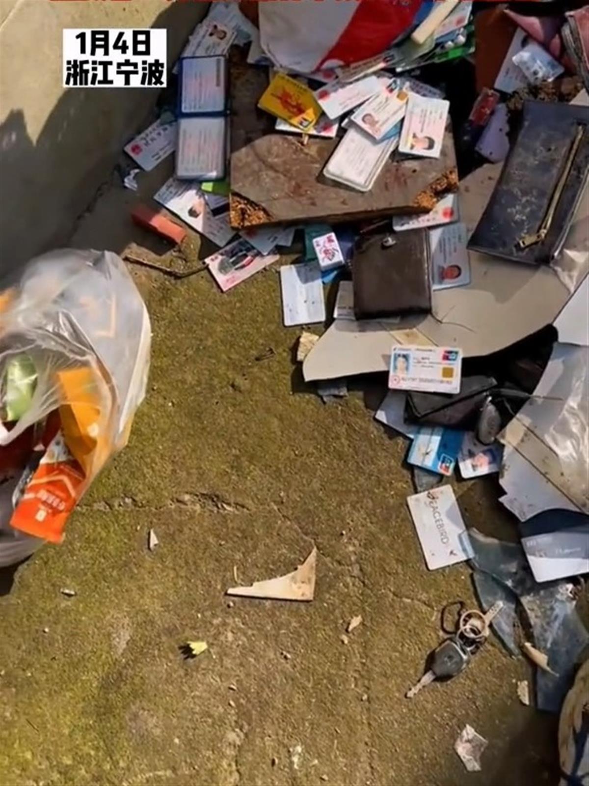 据媒体1月4日报道,浙江宁波余姚市临山镇一男子在路边垃圾堆发现了大量身份证、银行卡、医保卡等,不清楚它们是盗窃得来的还是死者遗物。