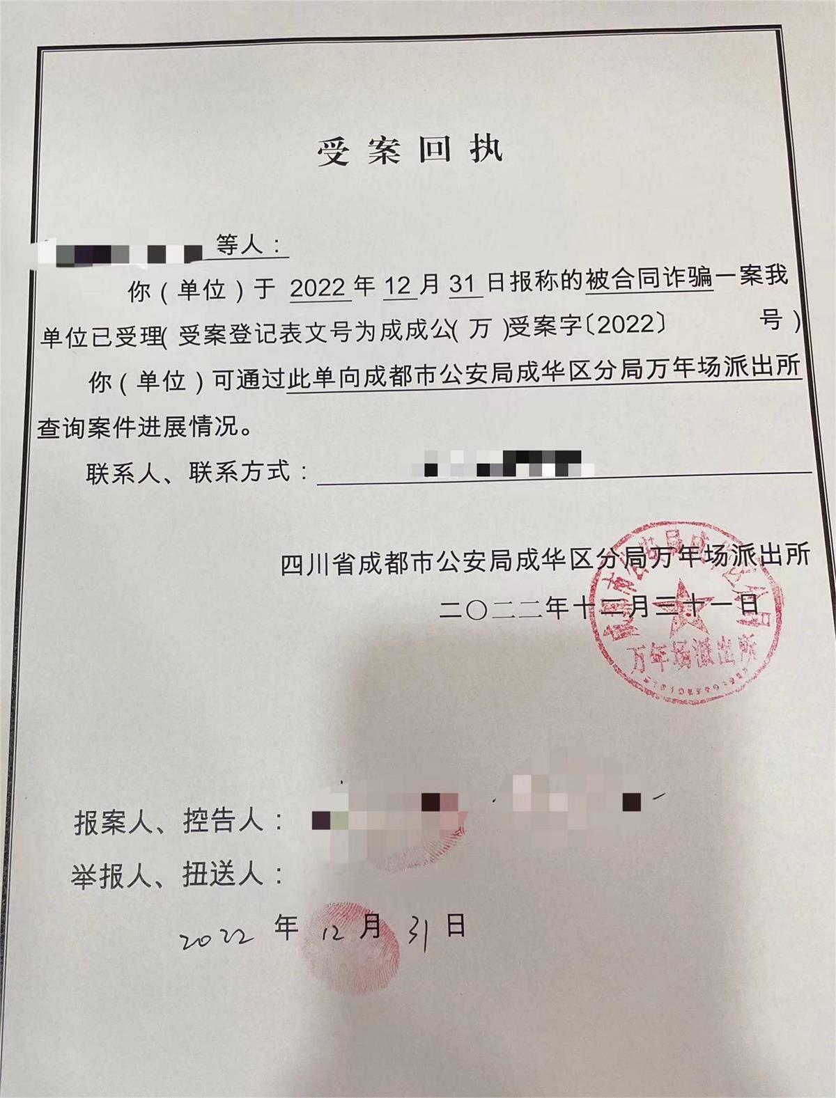 受案回执(受访者提供)