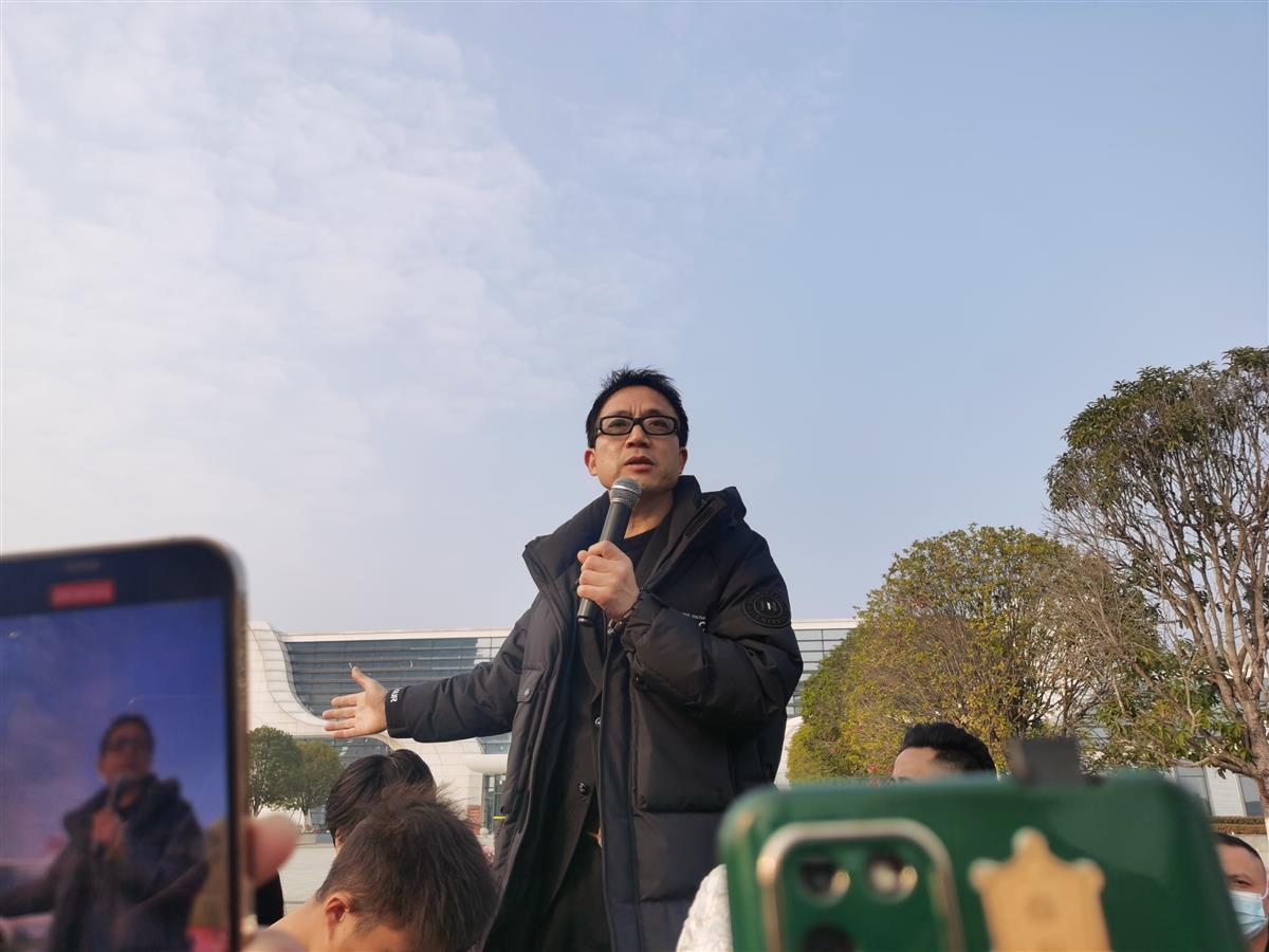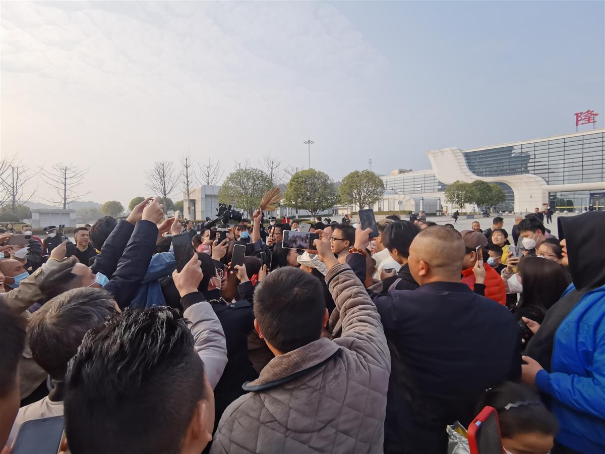 1月5日15时,隆回高铁站前广场人头攒动。不少来自全国各地的网红和隆回乡亲来到这里,高声唱着《早安隆回》,跳起热舞,等待袁树雄。