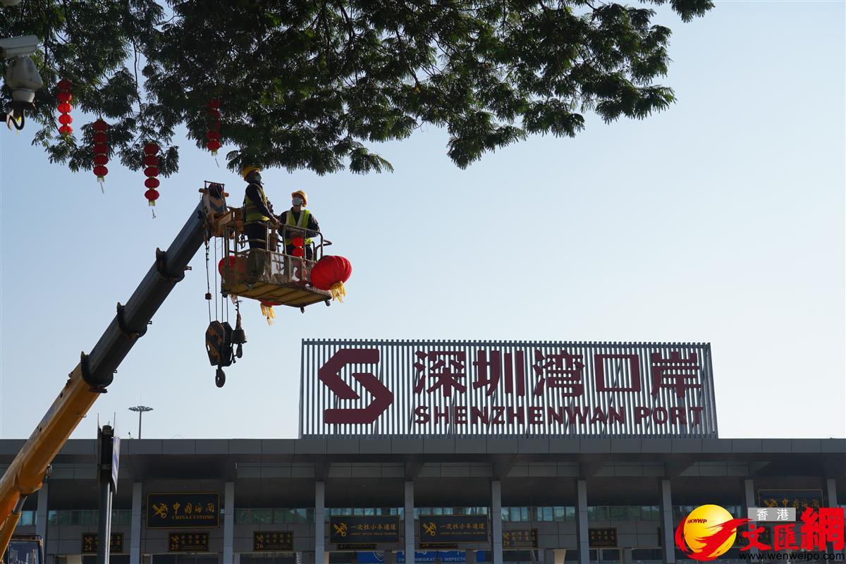 深圳湾口岸正在挂起红灯笼,为通关做最后准备(图片来源:香港文汇网)