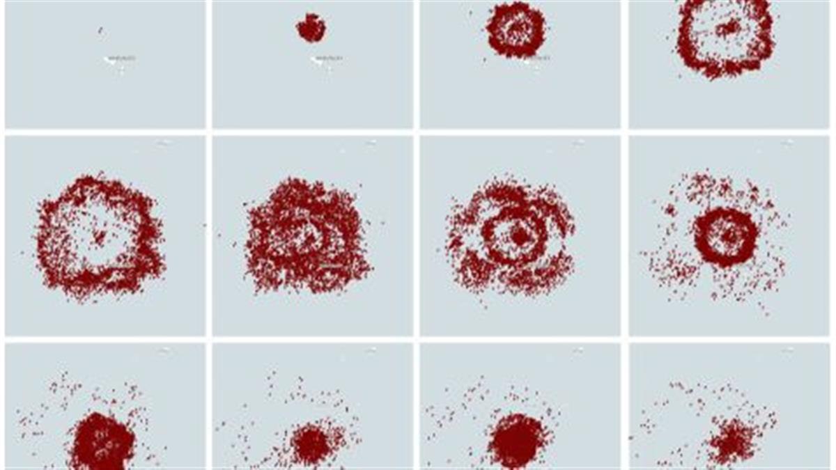 查看2022年1月15日汤加火山喷发时上空闪电的一分钟快照,维萨拉报告说,闪电在喷发高峰期环绕着火山,形成独特的环状图案。