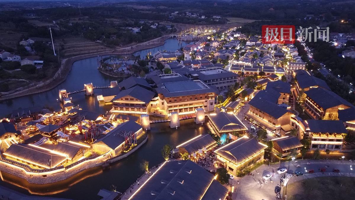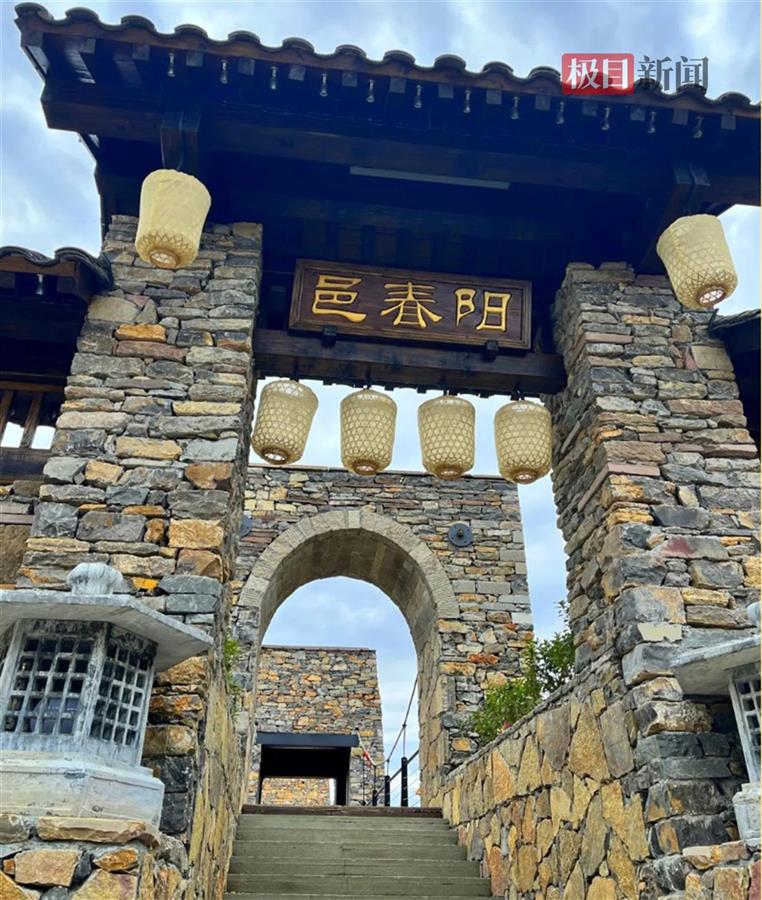 最新打造完成的阳春邑是国内首个古楚城郭文化代表——依水结寨,布满青苔的城墙绕水一周,与九神台景点隔河相望。经吊桥漫步而入,干阑木屋、染坊、射艺、酒家星罗其内,一派富庶的古楚石城肌理,仿佛穿越回2000年前,晒布架间长长的布条随风摇曳、光影错落,夹着河岸水草的芬芳。