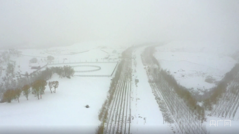 新疆和田大漠胡杨景区被白雪覆盖(央广网发依明江摄)