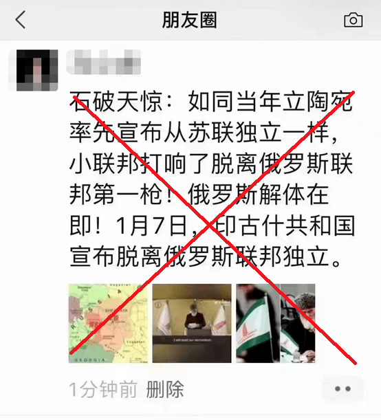 近日,中文网络流传一张微信朋友圈截图,称1月7日,本属于俄罗斯北高加索联邦管区的印古什共和国宣布脱离俄罗斯联邦独立。