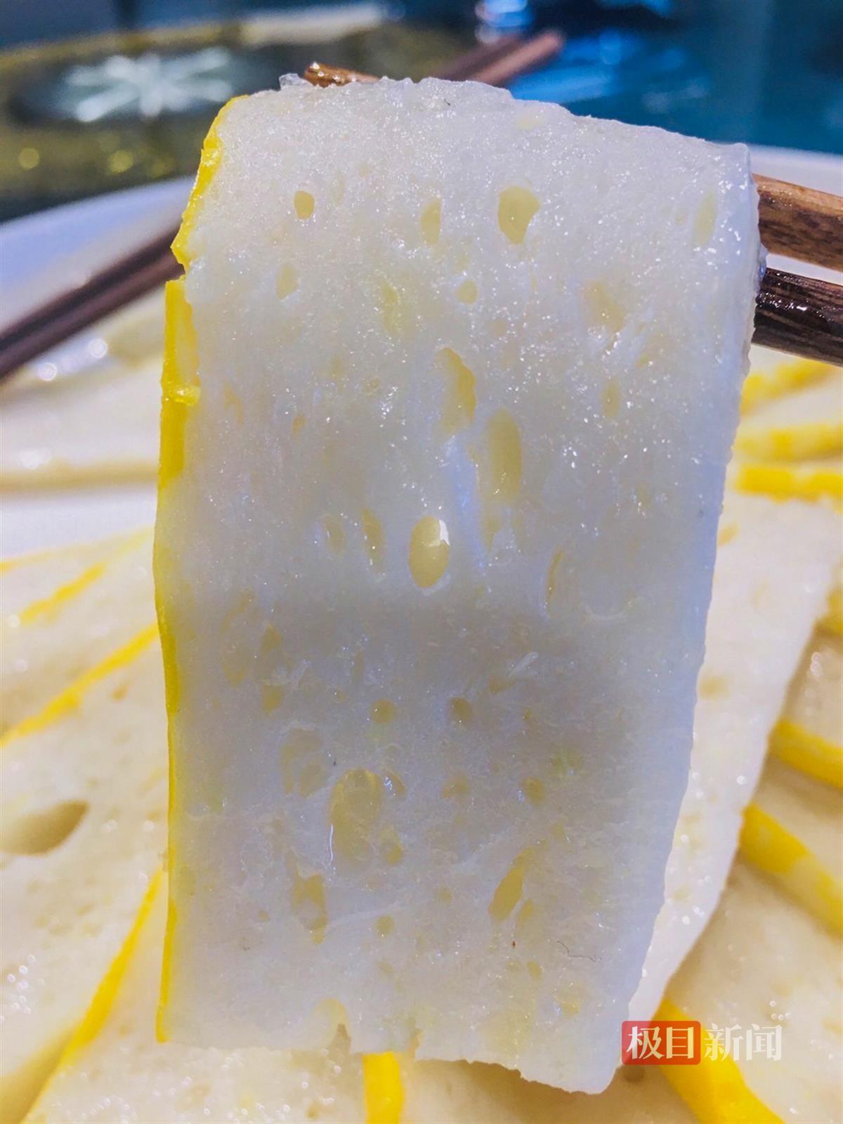 晶莹剔透的鱼糕上,蛋黄与鱼糕的深度“拥抱”,让亮黄色的鱼糕增加了一分层次。顺着糕体的切面看去,鲜香的鱼肉、土猪的肥膘经过纯手工的深度介入,再经过高温蒸汽的催化,形成了均匀分布的不规则气孔。