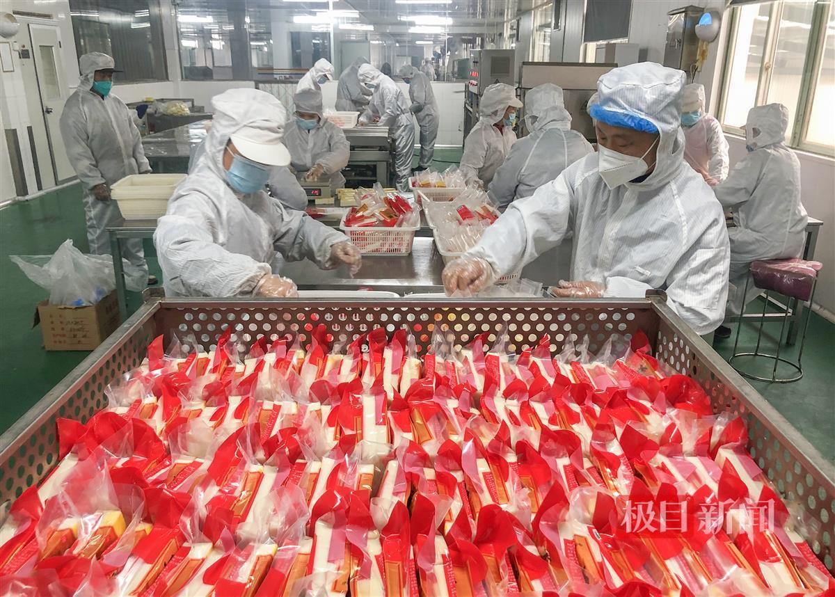 在位于荆州经开区跃进路的荆州依顺食品公司,企业负责人刘婷正在调度工人加紧生产春节前最后一批荆州鱼糕订单。