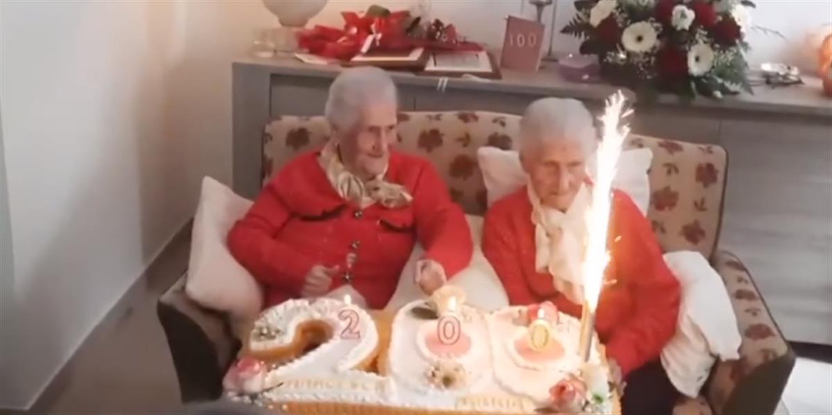 100岁已经是不少人生命中难以企及的里程碑,但意大利一对双胞胎姐妹却如此幸运,能够庆祝两人的“200岁生日”。据意大利媒体Repubblica和rotalianul1月25日报道,当地时间1月23日,在意大利东南部的一个村庄,两位老人的晚辈和亲戚一起为这对姐妹庆祝百岁诞辰。