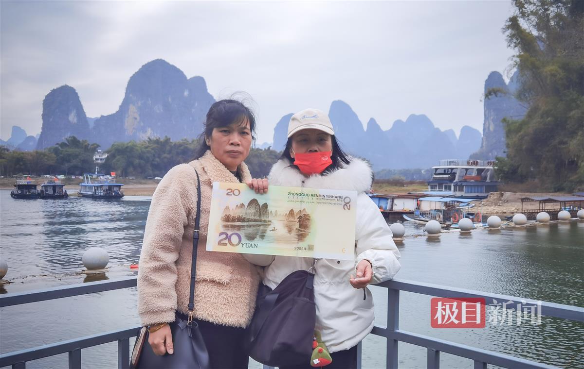 “我就是为20元背景风光而来的,以前只在小学课本上看到桂林山水甲天下,今天终于如愿亲眼观看,并且在这里合影留念,这趟来得太值了。”来自武汉的张女士兴奋地对记者说。