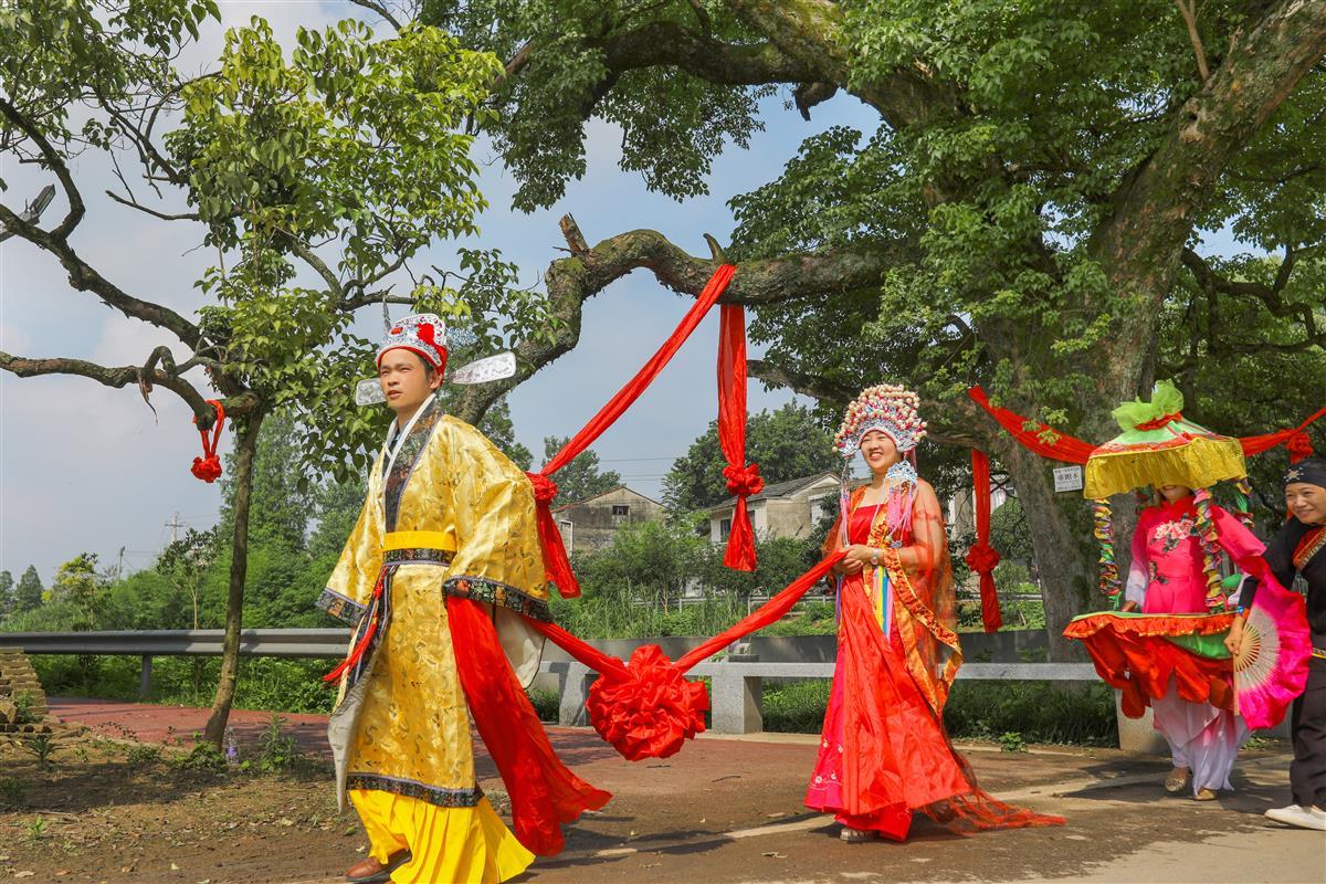 监利市柘木乡赖桥村,当地年轻人在重阳木古树的见证下举行传统婚礼