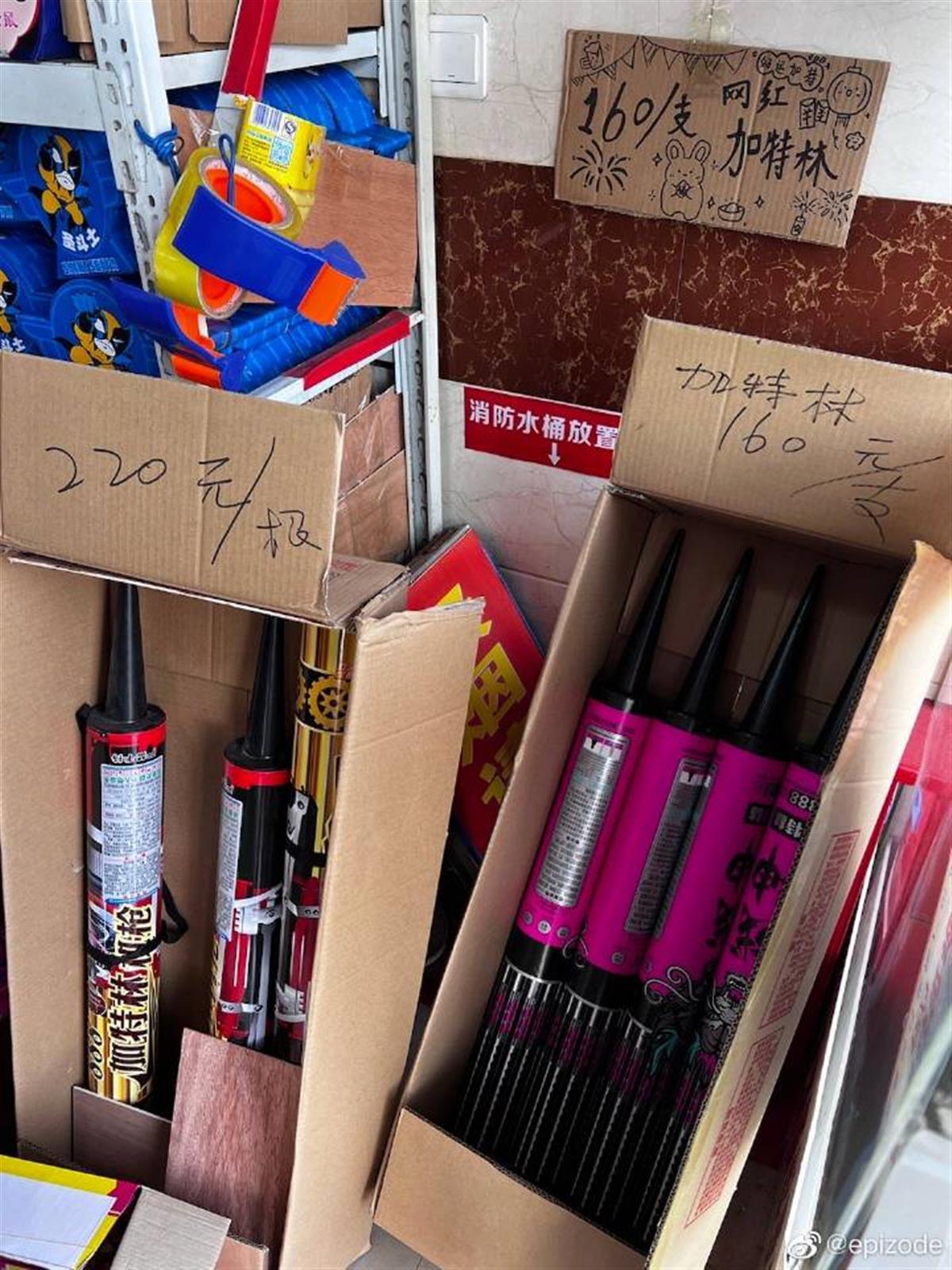 说起爆红的加特林烟花,西安零售商师红用“疯狂”来形容。她告诉记者,元旦前自己准备找经销商拿货,起初每支进价45元,后涨到60元,再后来进价超过了100元。“价格太高,拿回来没法卖,也怕卖不出去,最后一支没进。”