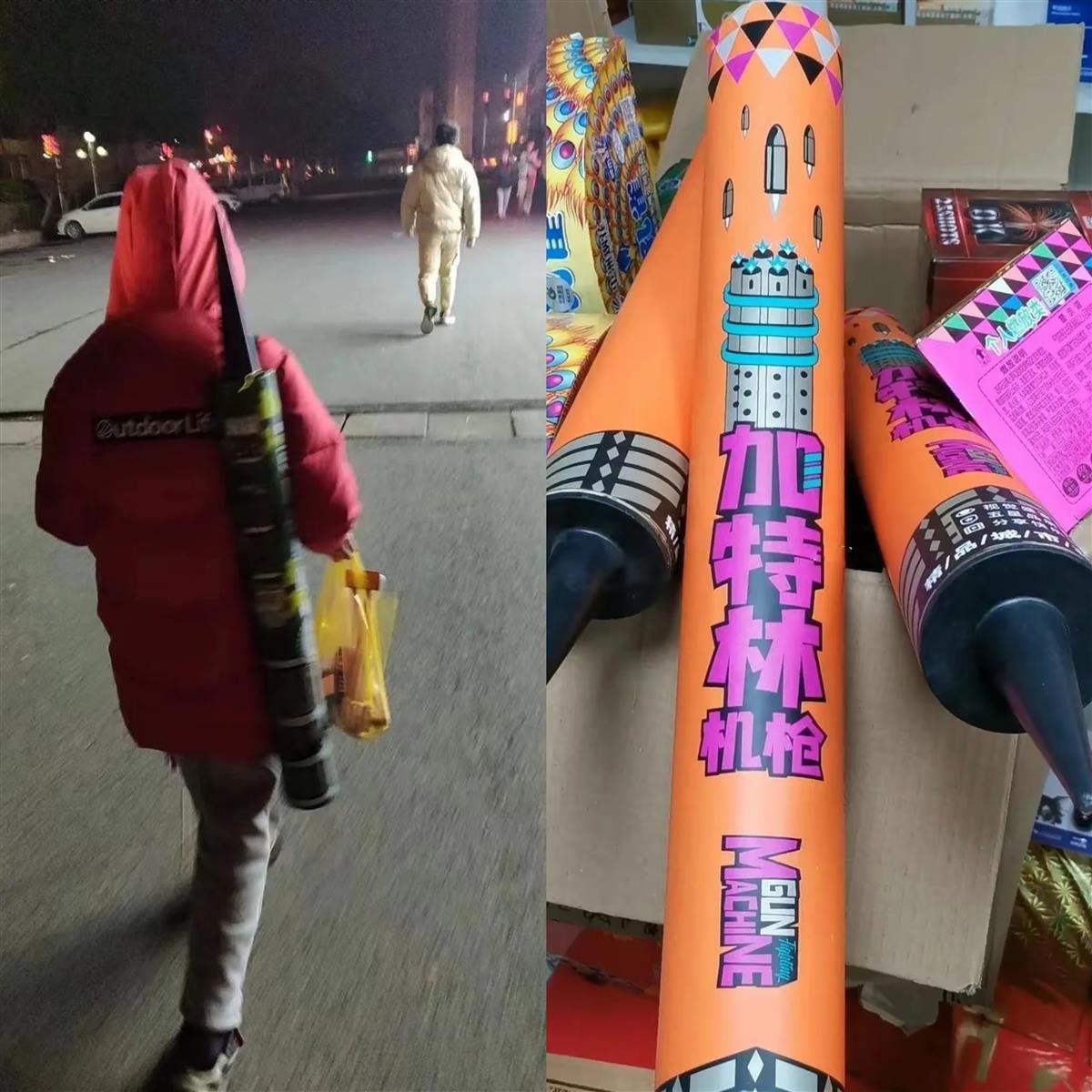 陕南某县零售商吕富在春节前先后进了两批加特林烟花,总共600支,进价从每支45元涨到75元,售价随之从70元涨到100元。他告诉记者,刚开始因嫌售价太贵,购买的人寥寥无几。直到除夕前几天,越来越多的年轻人返乡过年,店里的加特林烟花销量一下子上去了。“他们都是看了网上的视频来买的,我一个同学直接买了一箱(12支),花了1200元。”
