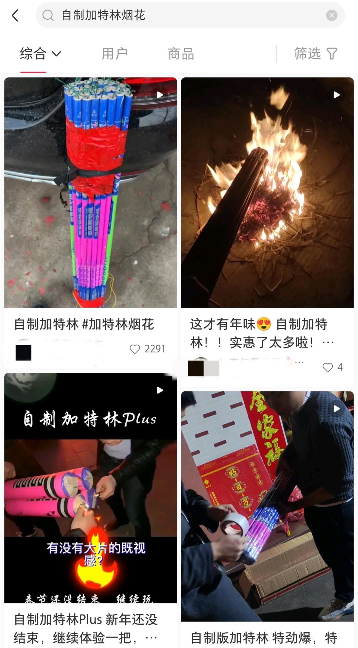 在朋友圈、抖音、快手、微博、小红书等多个社交平台上,都能看到网友分享的加特林烟花燃放视频和帖子,在春节前后爆红网络。晒加特林烟花成为了社交平台的重要年味元素,特别是年轻人,似乎燃放过加特林才算过了一个完整的春节。