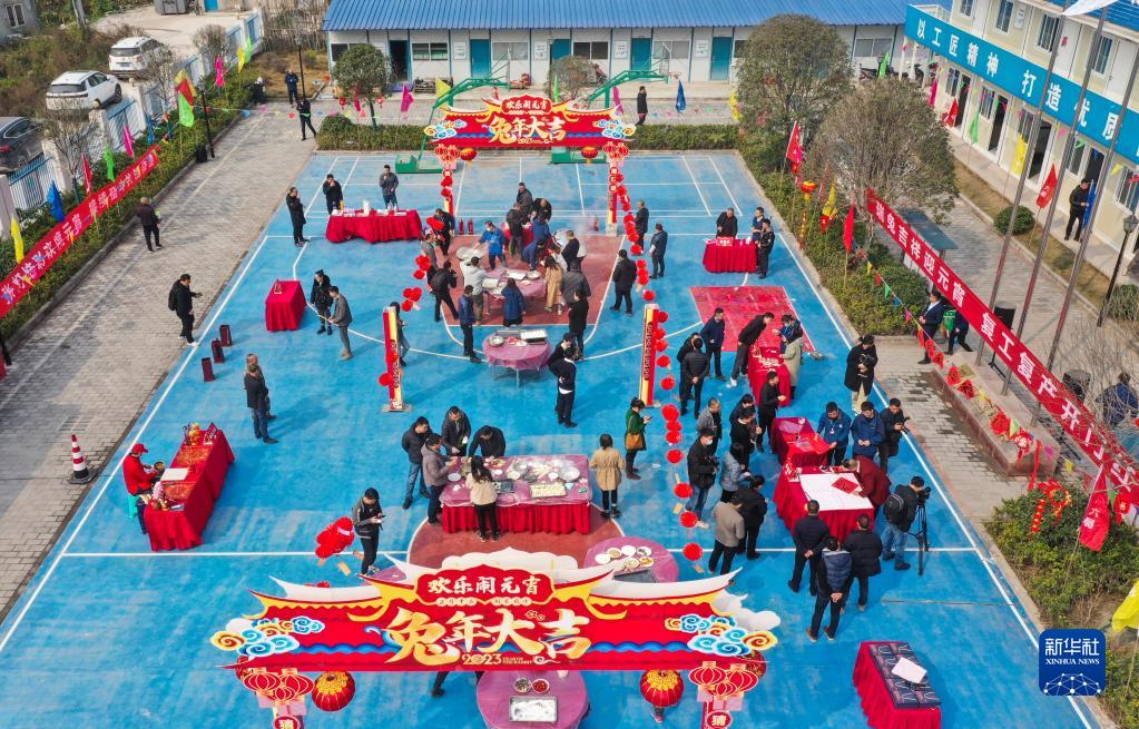 这是2月3日在位于重庆的中建六局科学城隧道工程一标段项目部拍摄的迎元宵主题活动现场(无人机照片)。