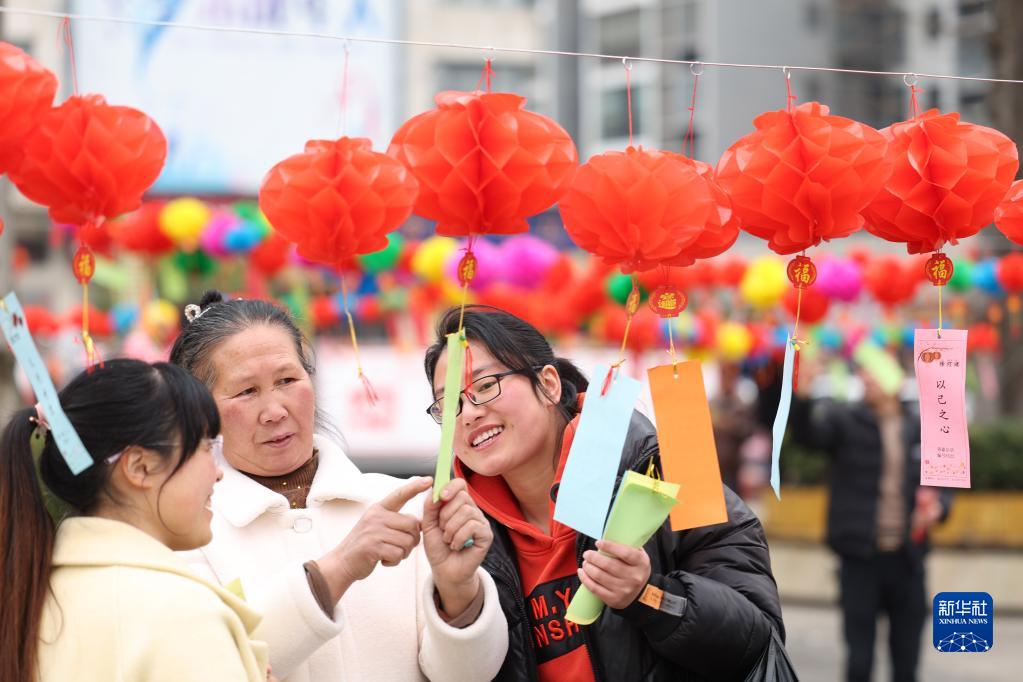 2月3日,在贵州省毕节市七星关区青龙街道,市民在猜灯谜。
