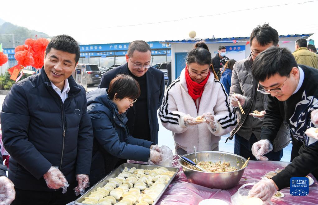2月3日,在位于重庆的中建六局科学城隧道工程一标段项目部,职工在迎元宵主题活动上包饺子。