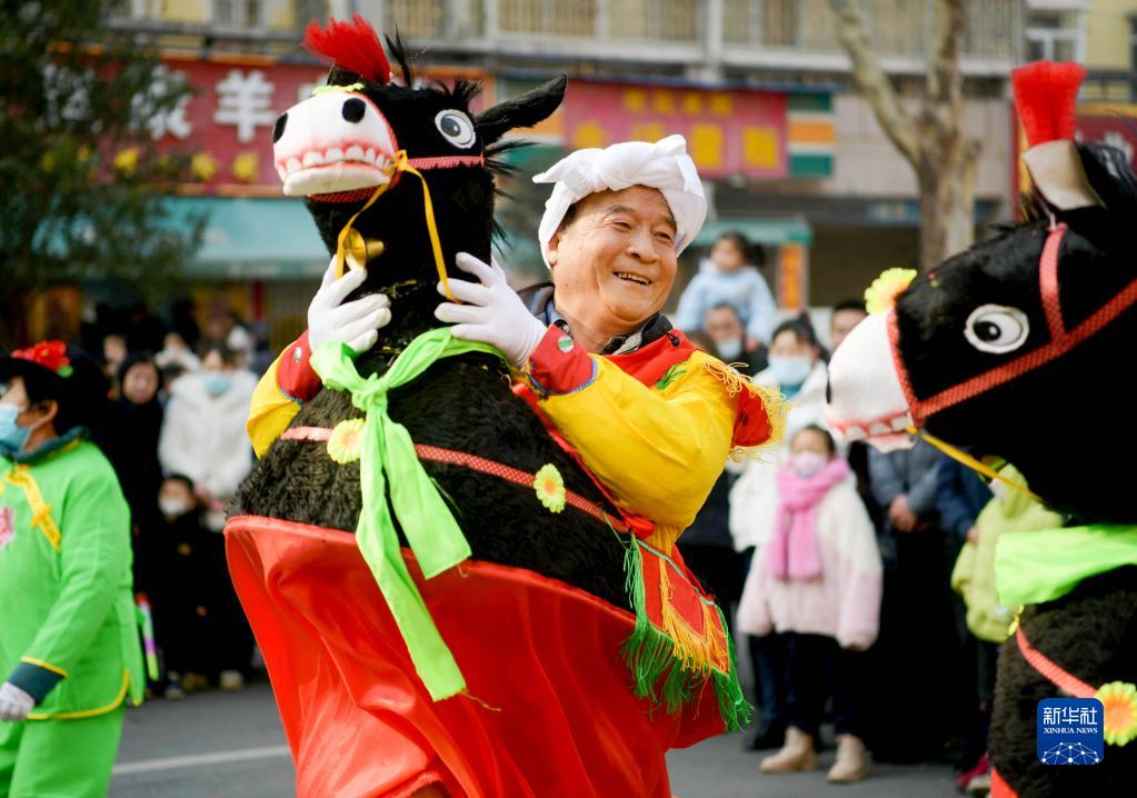2月3日,安徽省蚌埠市五河县城关镇的民间艺人在表演。