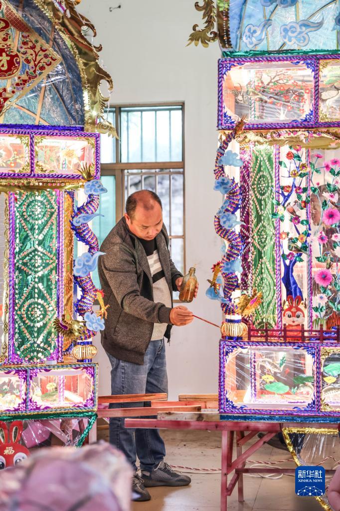 2月2日,海南省琼海市龙江镇南正村村民在制作花灯。