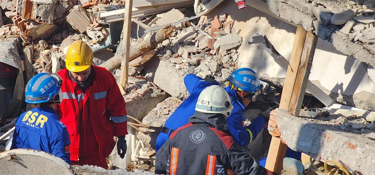 当地时间10日,蓝天救援队在马拉蒂亚震区一处首饰街附近找到一名遇难女子,这里的民房在地震后发生垮塌。