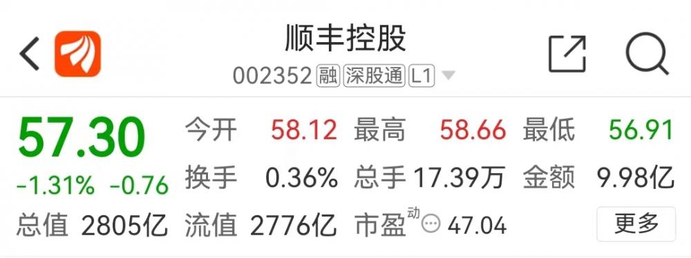 截至2月14日收盘,顺丰控股报57.3元/股,跌1.31%。
