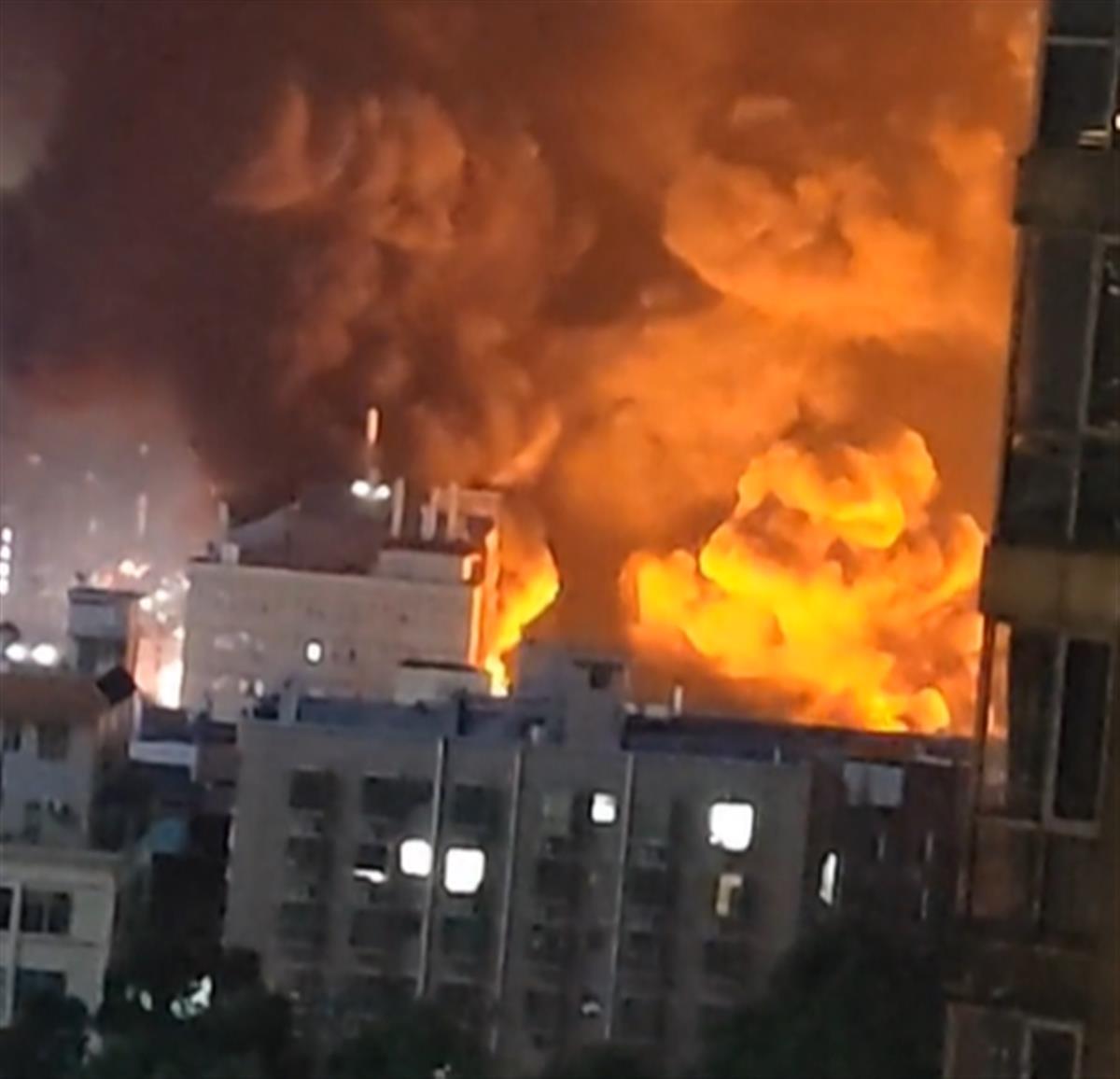 一名当地网友2月15日晚9时41分上传的视频显示,一栋楼宇旁冒起火光,浓烟滚滚。据了解,起火地点位于东莞市厚街镇西环路附近。