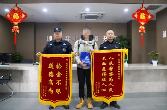 当天下午5点20分,东站一位保安师傅拎着蓝色袋子找到枢纽派出所民警,说是一位网约车司机在东站P1停车场里捡到的。