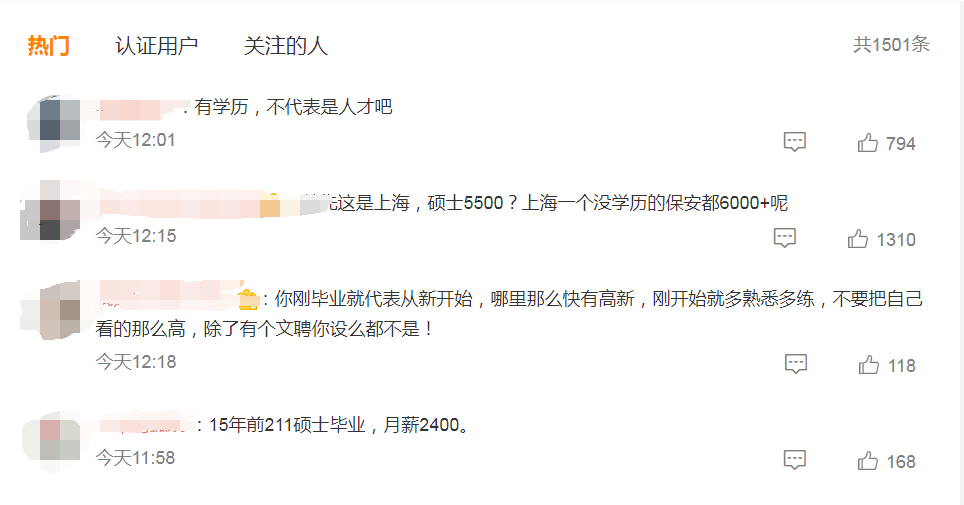 网友们纷纷在微博底下留言。有人说他“眼高手低”,没弄明白工资的收入和城市的消费水平以及他受教育的水平是没有直接关系的。