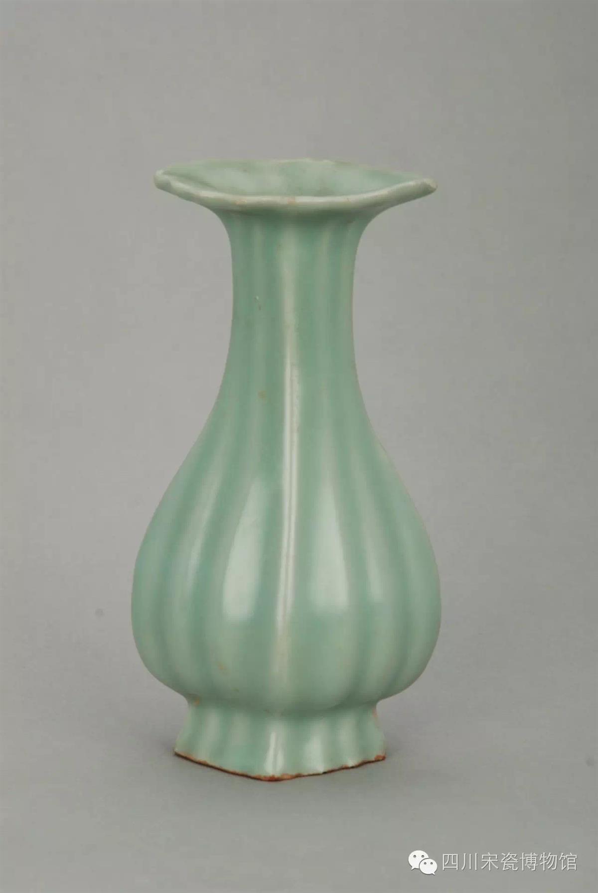 四川宋瓷博物馆,龙泉窑青釉瓜棱瓶