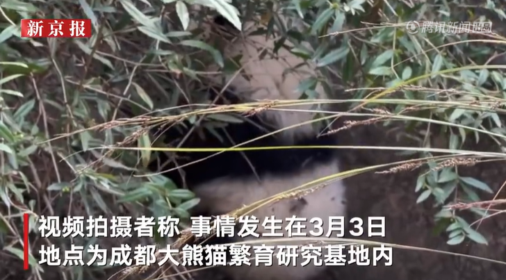 视频拍摄者称,此事发生在3月3日的成都大熊猫繁育研究基地内。
