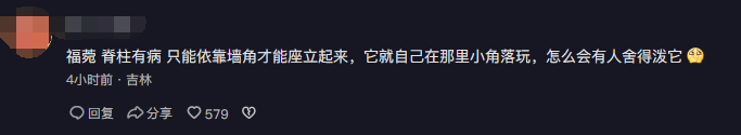 对于福菀被泼水躲在角落一事,网友们也都很心疼,纷纷在评论区表示“怎么会有人舍得泼它”。