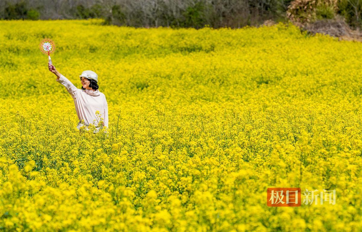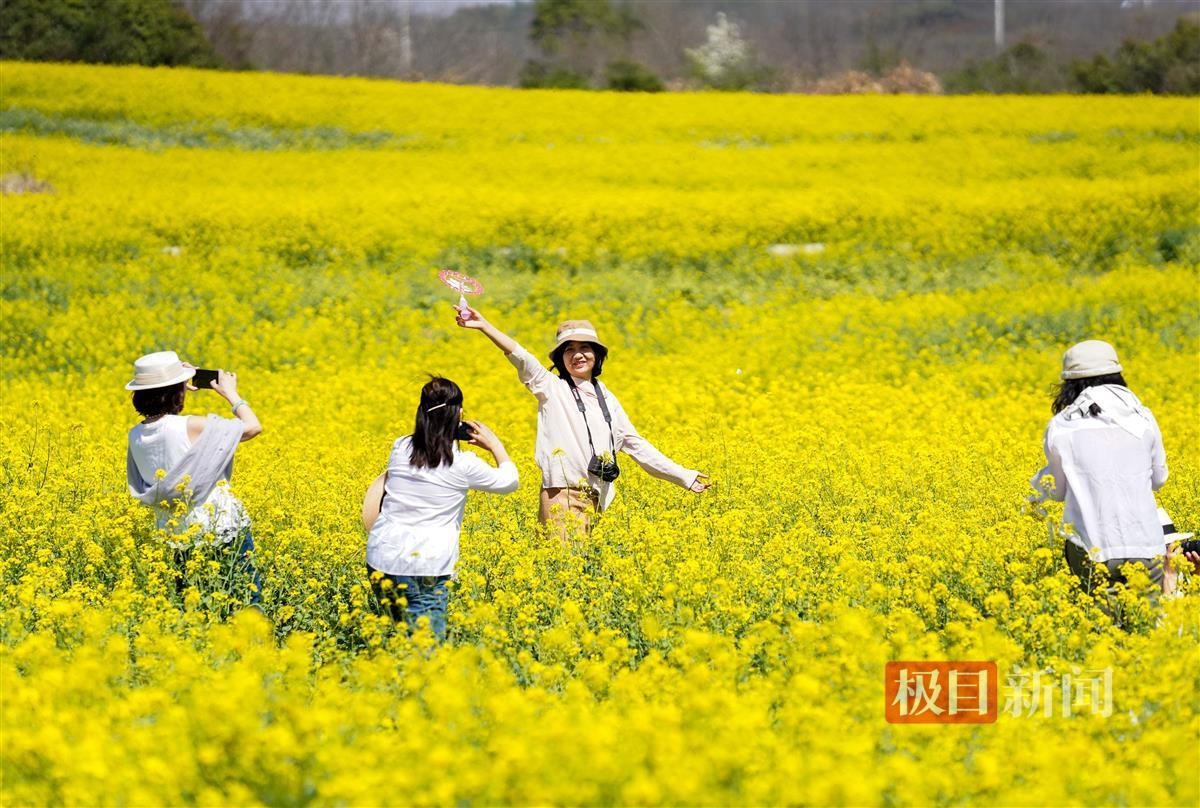 以“七彩花海”闻名的武汉花博园赏花点,也是游客到江夏赏花的必到打卡点之一。西瓜红、雪白、樱花白、粉红、桃红、紫色、金黄色等七色油菜花品种,竞相绽放、姹紫嫣红,把周围的数百亩金黄色油菜花也点缀得分外妖娆,吸引了不少市民前来踏青赏花。今年,武汉花博园将组织开展美食、游乐、露营、宠物喂养等全方位文化体验,解锁更多春游赏花玩法。