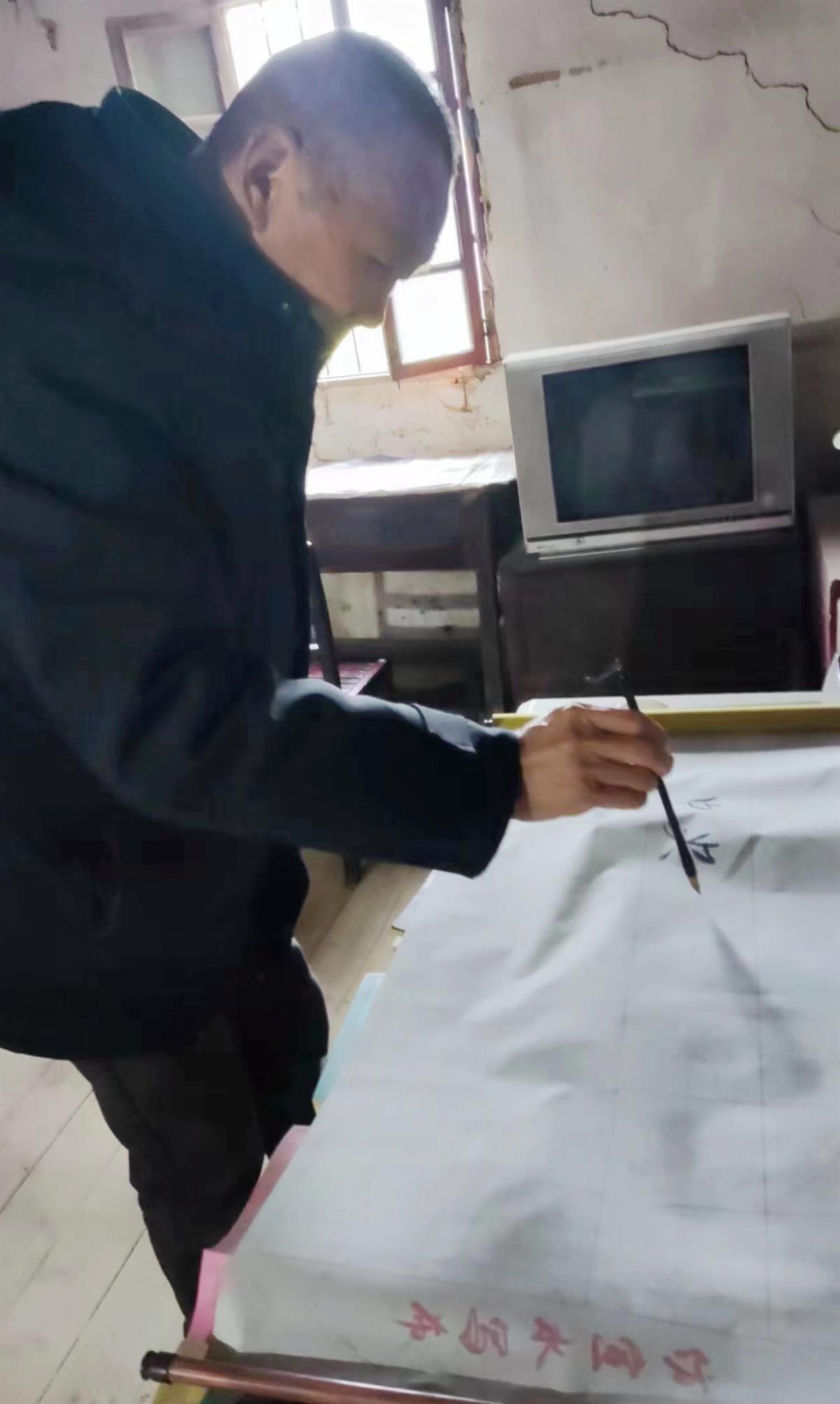 3月21日,极目新闻记者来到新洲徐古街龙岩村王家村湾,在一处挂有多幅书法作品的农家书屋内,见到了王凯臣。“清明时节雨纷纷,万物争春鸟语纷。人换精神地换貌,脱贫致富小康奔。”他正在桌前静心创作着清明节的诗歌。