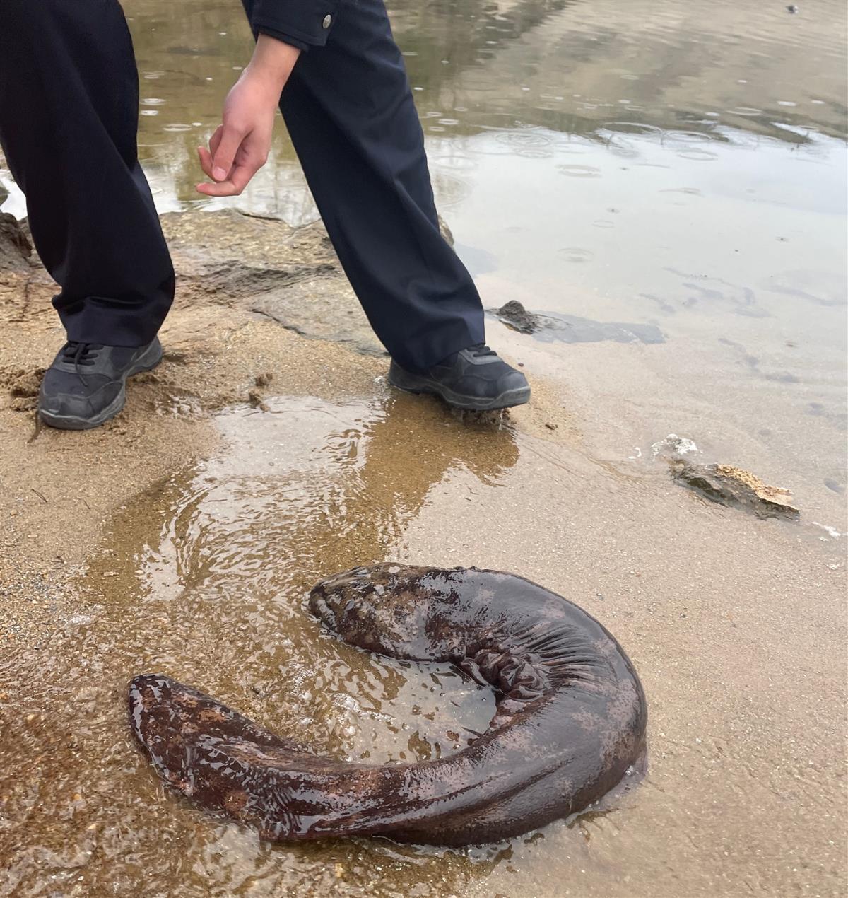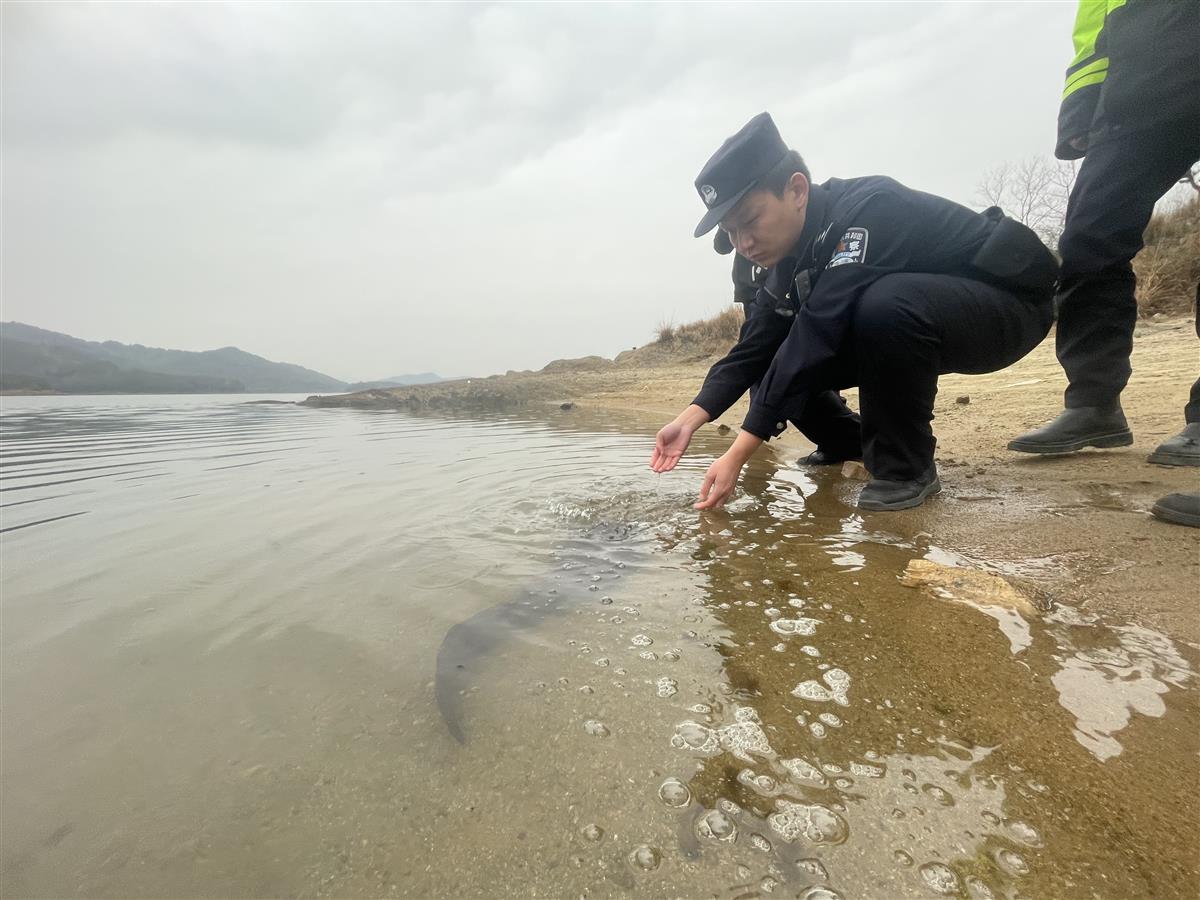 经过一段时间的认真检查和观察,确认这条鱼没有外伤、体征正常后,民警在尾斗水库专业人员、管理人员的见证下,将这条野生娃娃鱼送到生态良好、水质优良的尾斗水库放生,帮助它回归大自然。