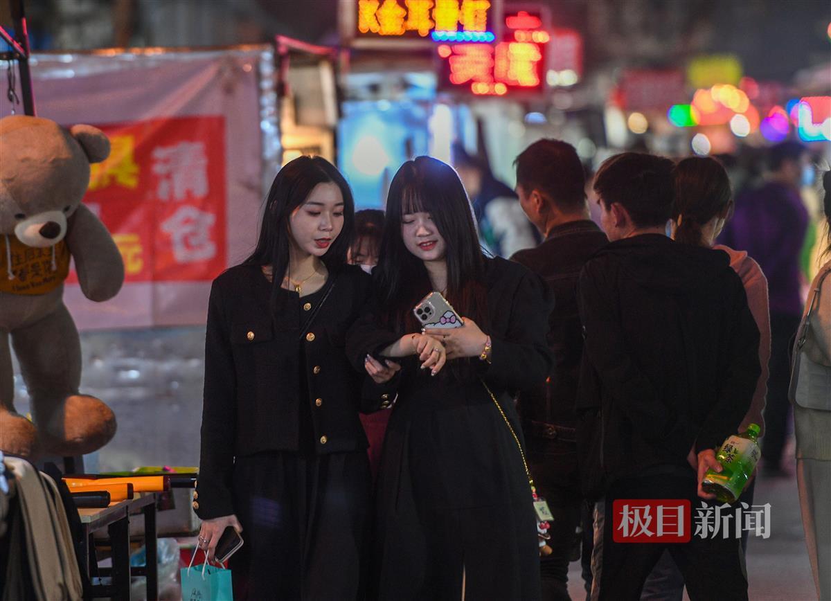 汉口保成路夜市,就在闹市楼宇之间,本来道路就窄,一个个夜市摊位上路后,客流就在狭长的通道内流动,但毫无妨碍大家吃喝娱乐购:喝碗藕汤聊个天,买个心仪的手机壳,淘一条精致的手链……人头攒动中,就是逛的一种人气和热闹。