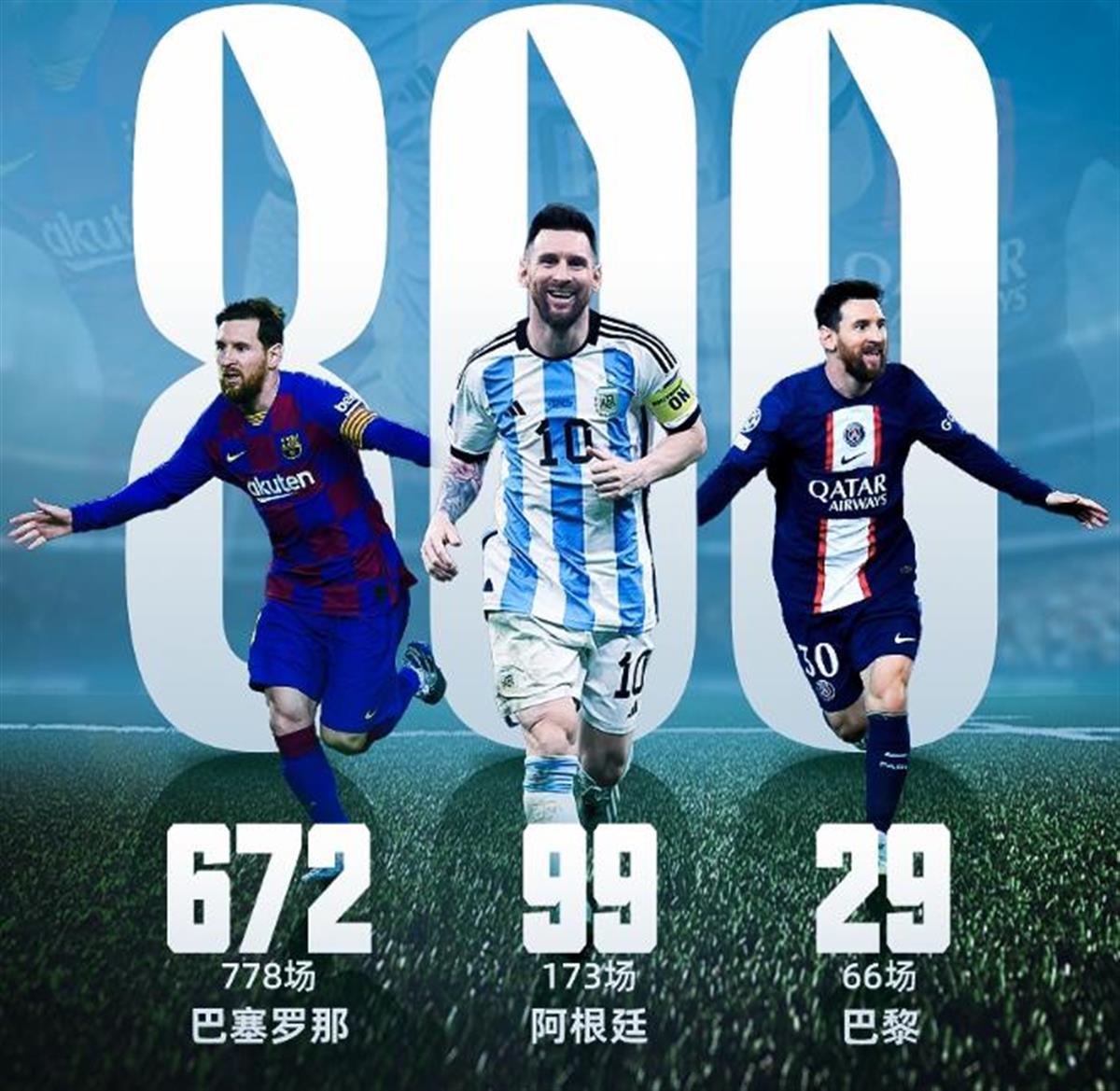 数据显示,梅西的800粒进球中,在巴塞罗那队最多,达672粒,在阿根廷国家队则是99粒,即将破败,在巴黎则是打进29球。