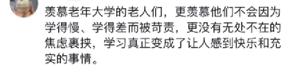 在最近爆火的老年大学评论区,总是免不了年轻人对于这类生活的羡慕。除却那些调侃,也许年轻人不仅羡慕是老年人低价学习兴趣班的“实惠”,更羡慕拥有充足时间学习自己想学的知识和悠然自得抛却功利的学习状态。