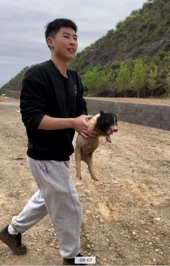 追着跑了半天,好不容易才抓到一只小猪,“是不是很可爱?虽然每天很累,但它们可爱的模样还是挺治愈的。”但“卖萌”不过3秒,小猪就从姚泽森怀里挣脱出来。