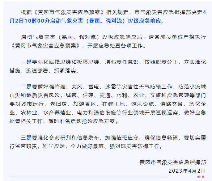 湖北多地启动气象灾害(暴雨、强对流)Ⅳ级应急响应