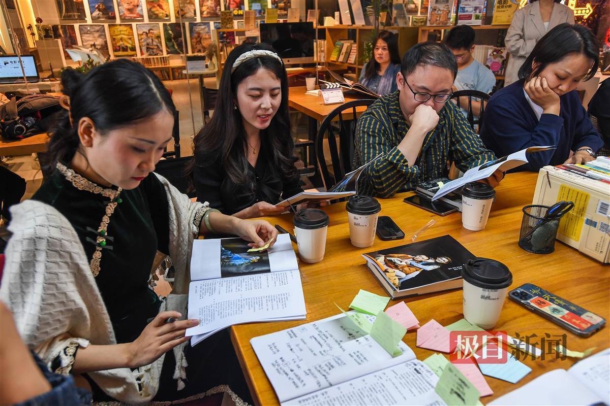 今年26岁的张芷瑾大学编导专业毕业,是云曰书馆的一名工作人员。采访当天,她在这里为读剧和看电影的读者做服务工作。张芷瑾告诉极目新闻记者,“刚开始组织读剧活动的时候,我们还担心会不会太无聊,读不下去,后来发现这是一件很有趣的事情,当自己深入到角色中,时间过得特别快。”“云曰读剧”也成为了云曰书馆的一项特色活动。