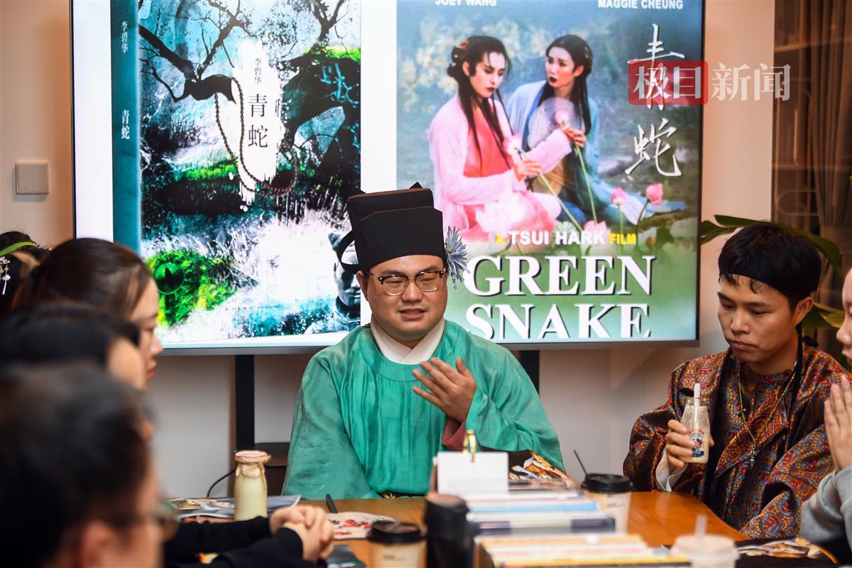 4月2日,室外气温突降,大雨滂沱,十多位年轻人围坐在位于武昌昙华林的云曰书馆,分别扮演法海、白娘子、小青、许仙、僧人甲、僧人乙等,共读田沁鑫导演的《青蛇》剧本。这是云曰书馆面向公众开放的“云曰读剧”活动,在读剧之前,读者们一起观看了徐克导演的电影《青蛇》。许多读者带着李碧华的原著小说《青蛇》前来参加活动。